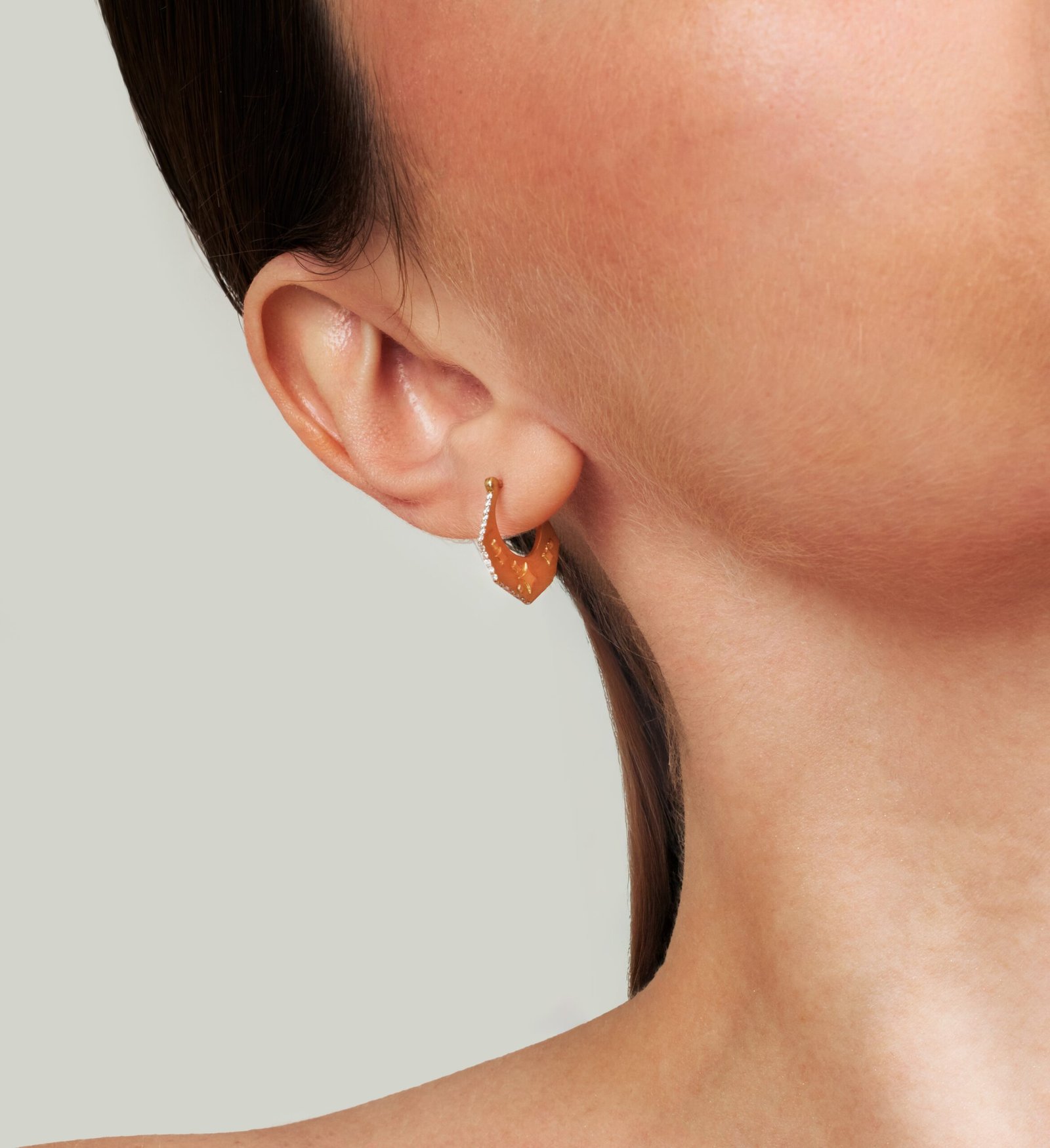 Inspired by the Greek goddess of wisdom, the Athena Arc Earrings showcase a bold crescent form with intricate geometric detailing. Crafted in 18 karat gold and diamonds