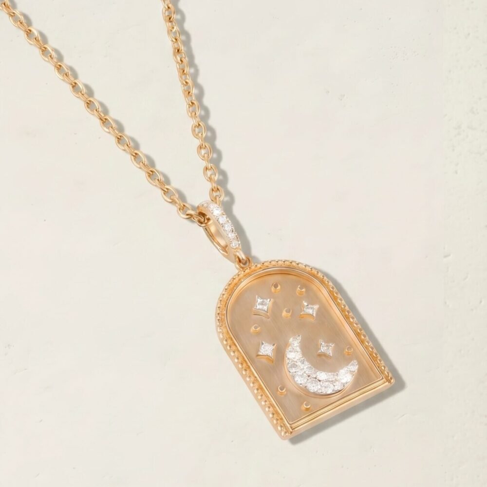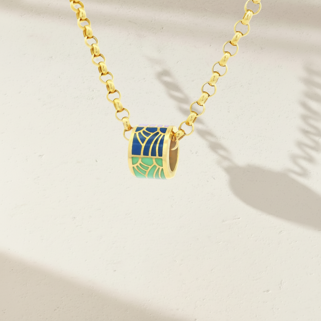 This necklace features a striking roundel in vibrant multicolored enamel, adorned with the signature Drabzeen pattern. It embodies the essence of playfulness and elegance, making it a versatile piece that complements any outfit.