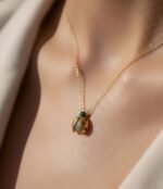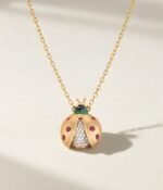 A guardian in 18K gold, this ladybug features a malachite head, a polished gold body with diamond accents, and ruby spots. A symbol of luck and grace.